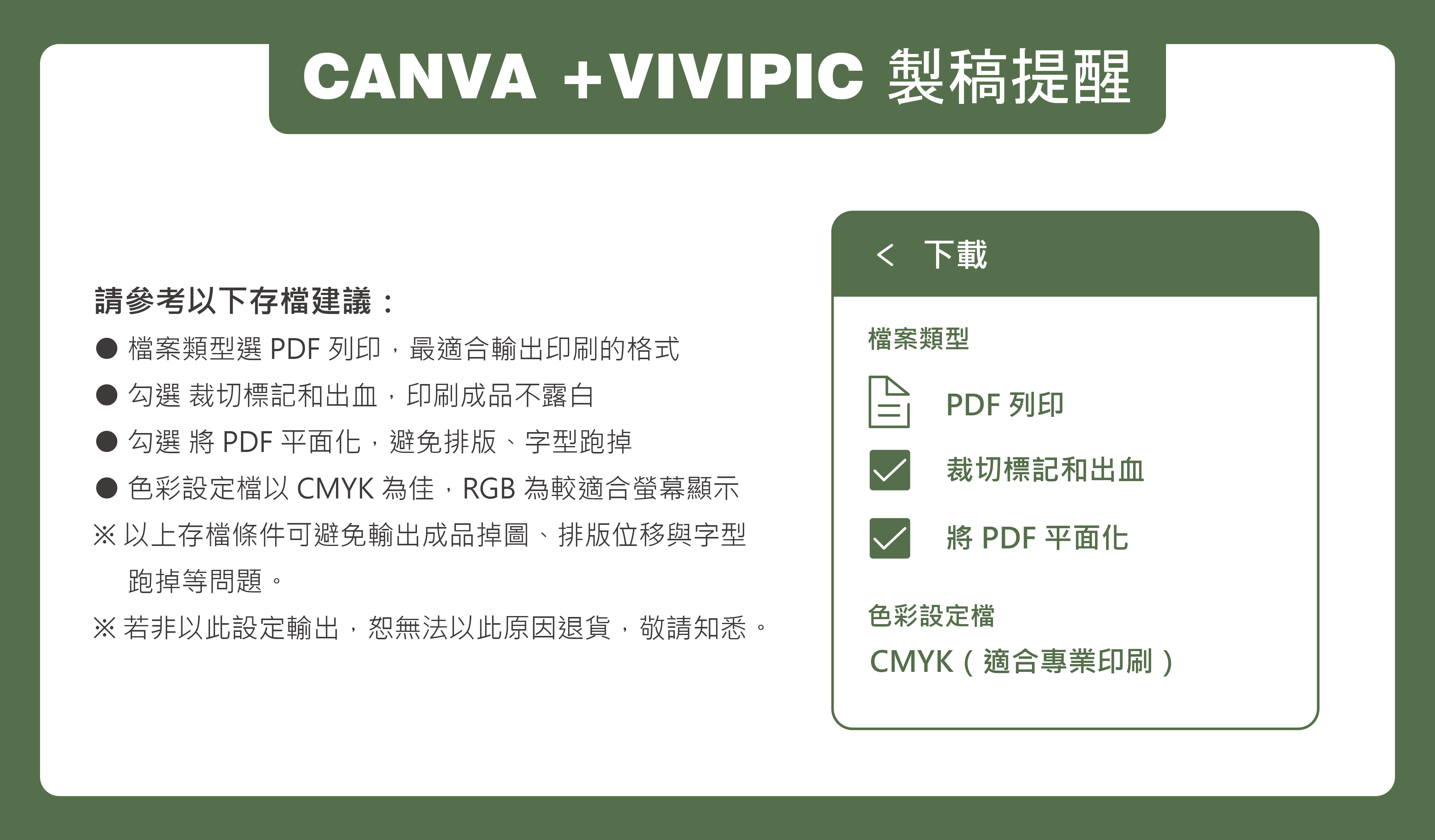 - 檔案不符合基本規定,一律以退件處理,若不願意被退件,執意印刷,恕不負印刷責任。