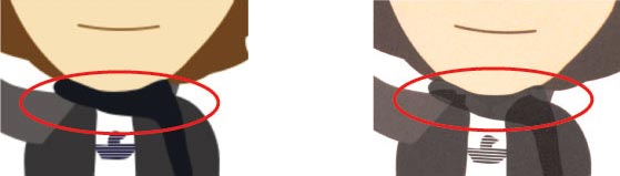 ▲ 設計原稿填色為K100(圖左),印刷結果會變成黑色直壓(圖右)