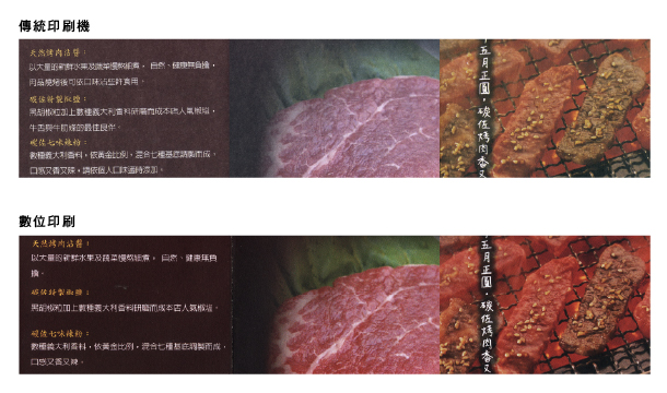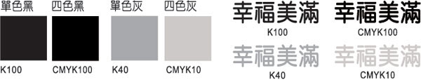 - 常有客戶說印刷顏色不夠黑,除了是紙張表現因素外,主要原因為印刷色序為K→C→M→Y,先印上黑色版後再上其他色版。