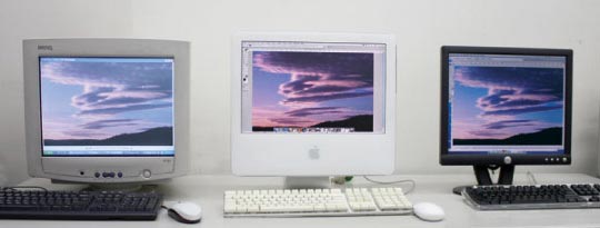 - 電腦顯示器與印刷品成像原理不同:電腦螢幕顯示器是以RGB色光成像,而印刷品是以CMYK印刷四色模式,因成像原理不同,螢幕顯示與印刷成品的多少存在著色彩差異。此外,就算是電腦螢幕,因不同品牌型號及個別色彩設定參數,也會造成顏色觀看上的不同。