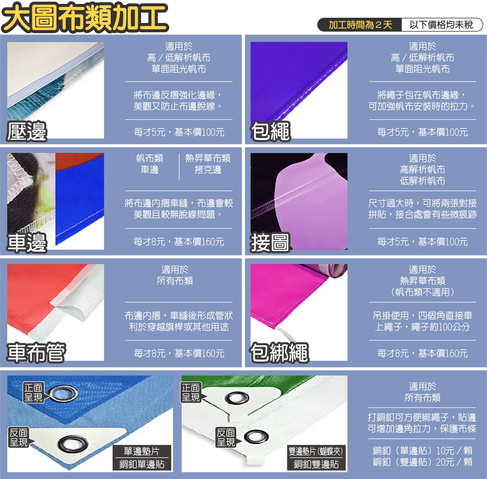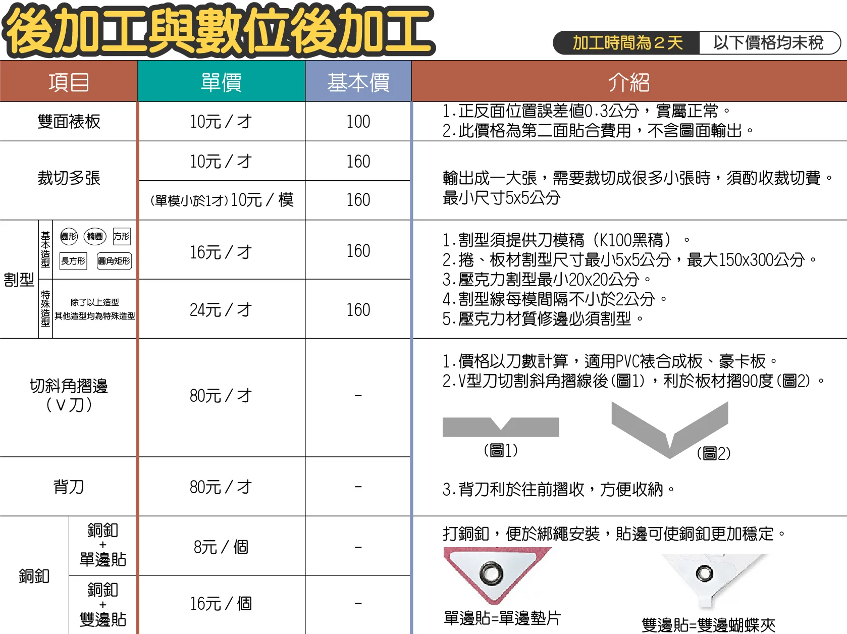 - 加工價格不足基本價時,將以基本價計算。