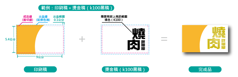 - 印刷稿及燙金稿,範例如下: